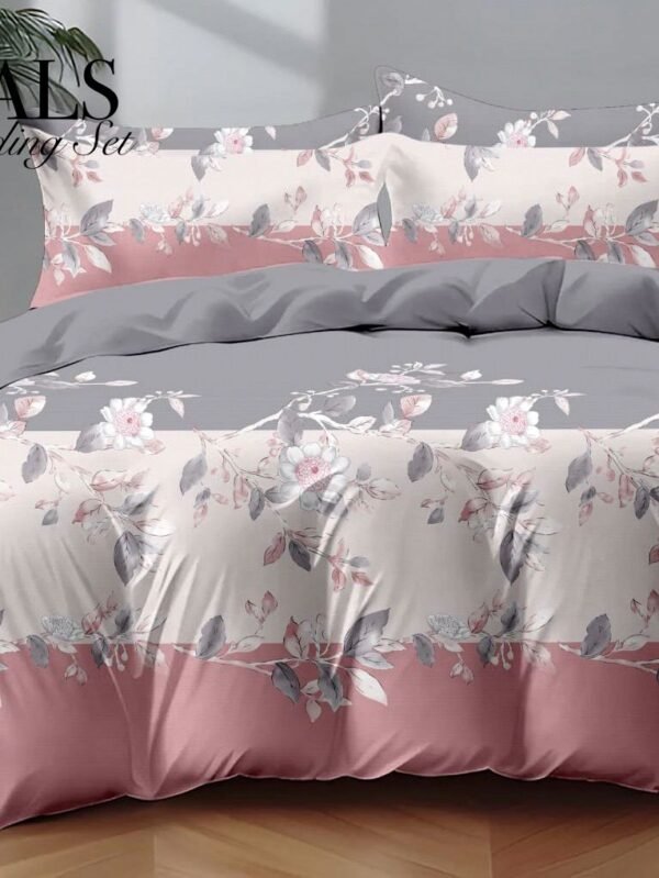 Petals 3PC Premium Heavy Glace Cotton Bedding Set – King Size (5.5' X 7')